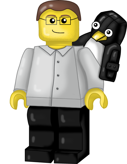 Le bonhomme LEGO de moi avec le pingouin Tux, la mascotte de Linux, est une création de mon amie Darkkali23. N'hésitez pas à la contacter pour vos besoins en graphisme.